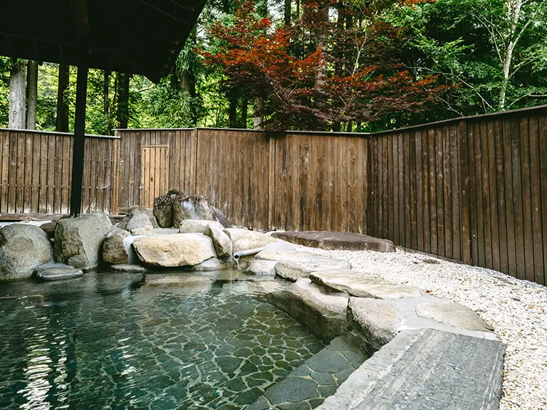 祭畤溫泉「Kamikura」是一處被森林環繞的靜謐溫泉。